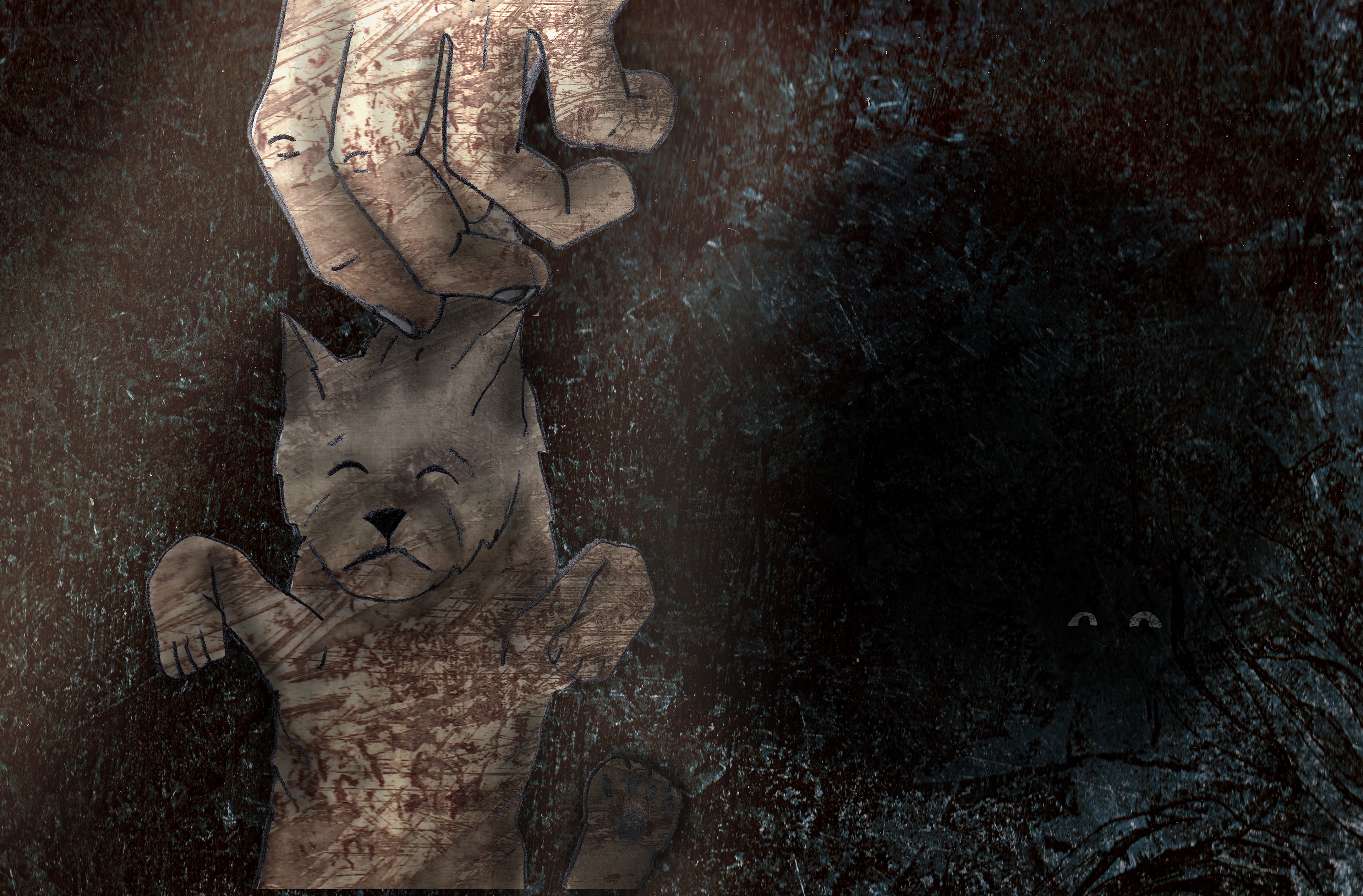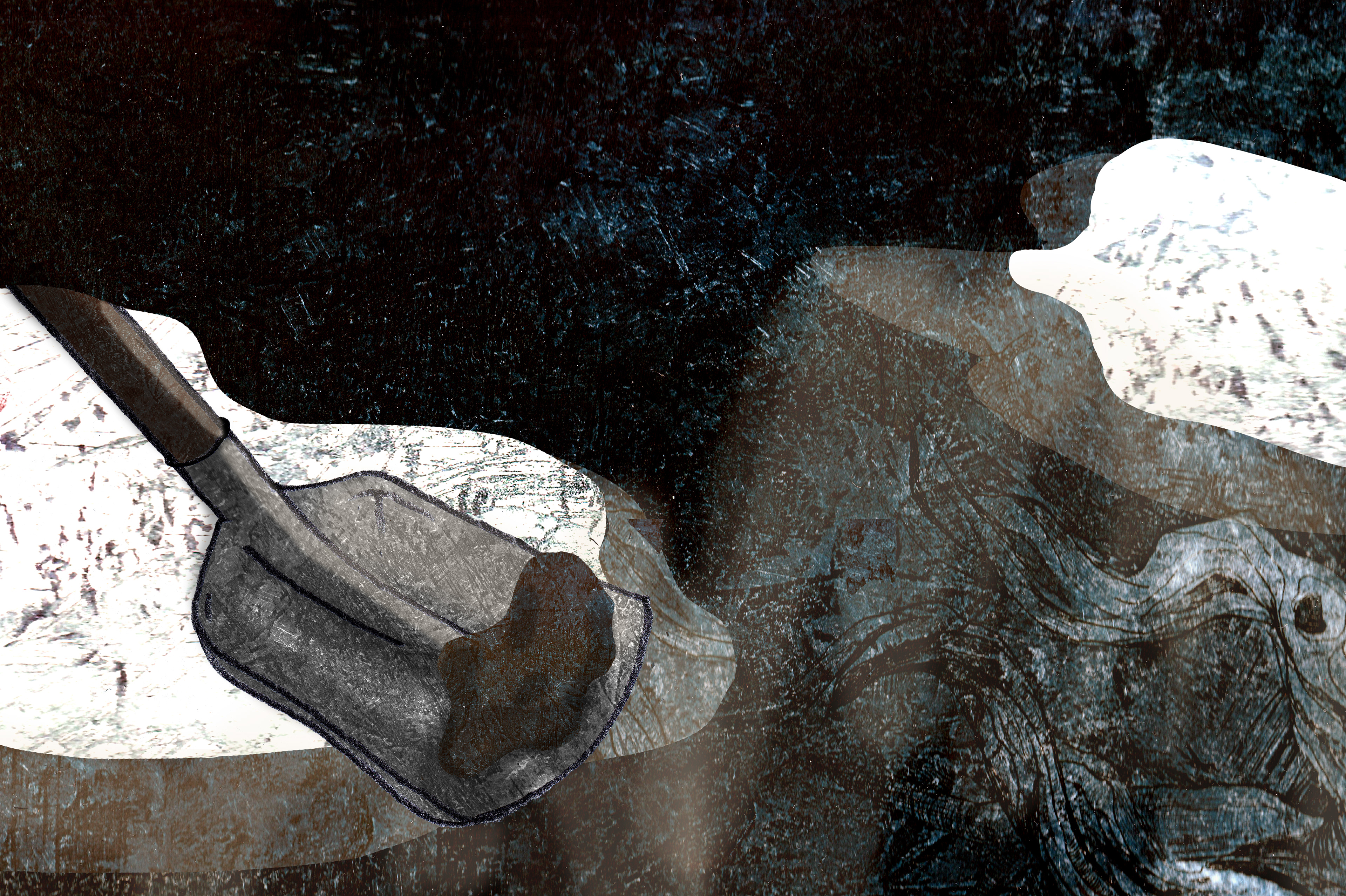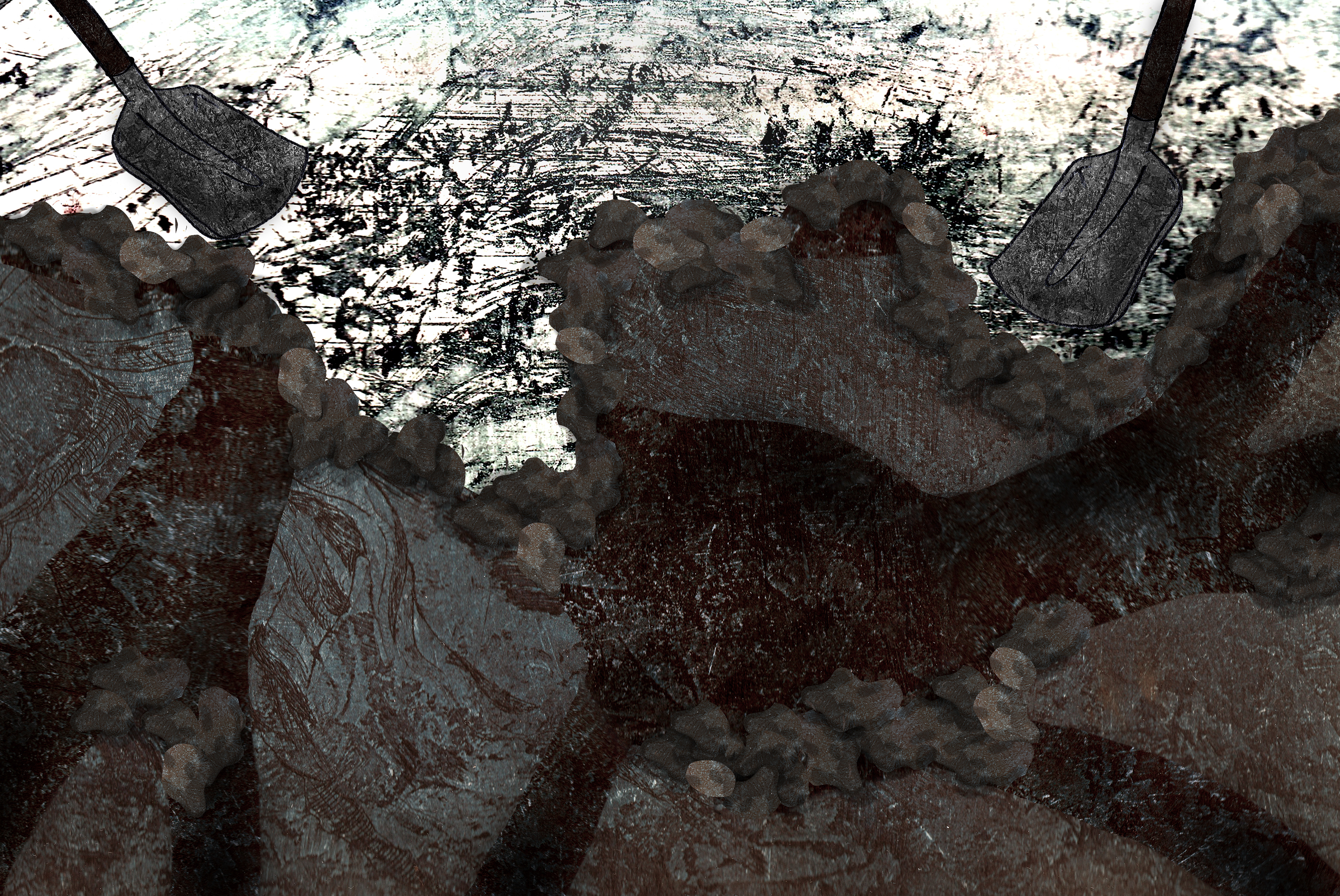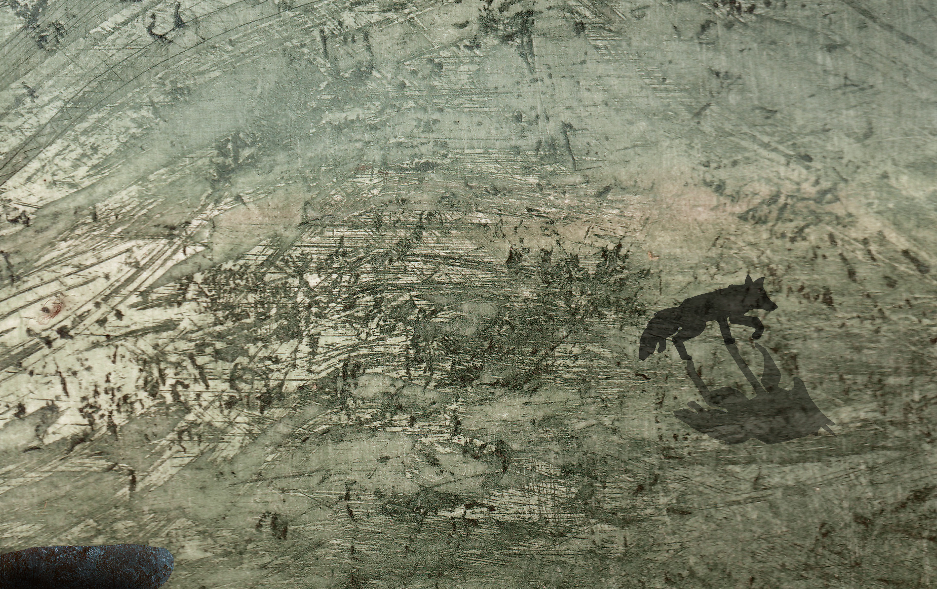 'The Three Foxes' is based on a real story. My family and I found a little fox next to a fox den. We tried to save him/her and it's two brothers/sisters. But nog everything will always work out the way you want it to... I made digital collages with etching textures and pencil drawings.